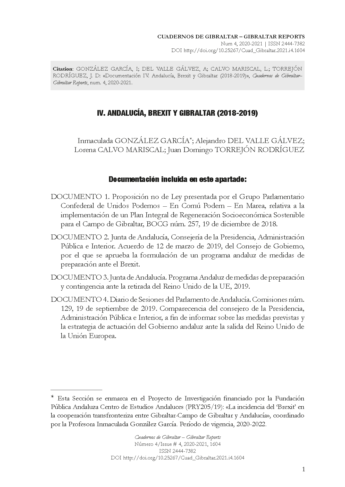 Documentación IV. Andalucía, Brexit y Gibraltar (2018-2019)
