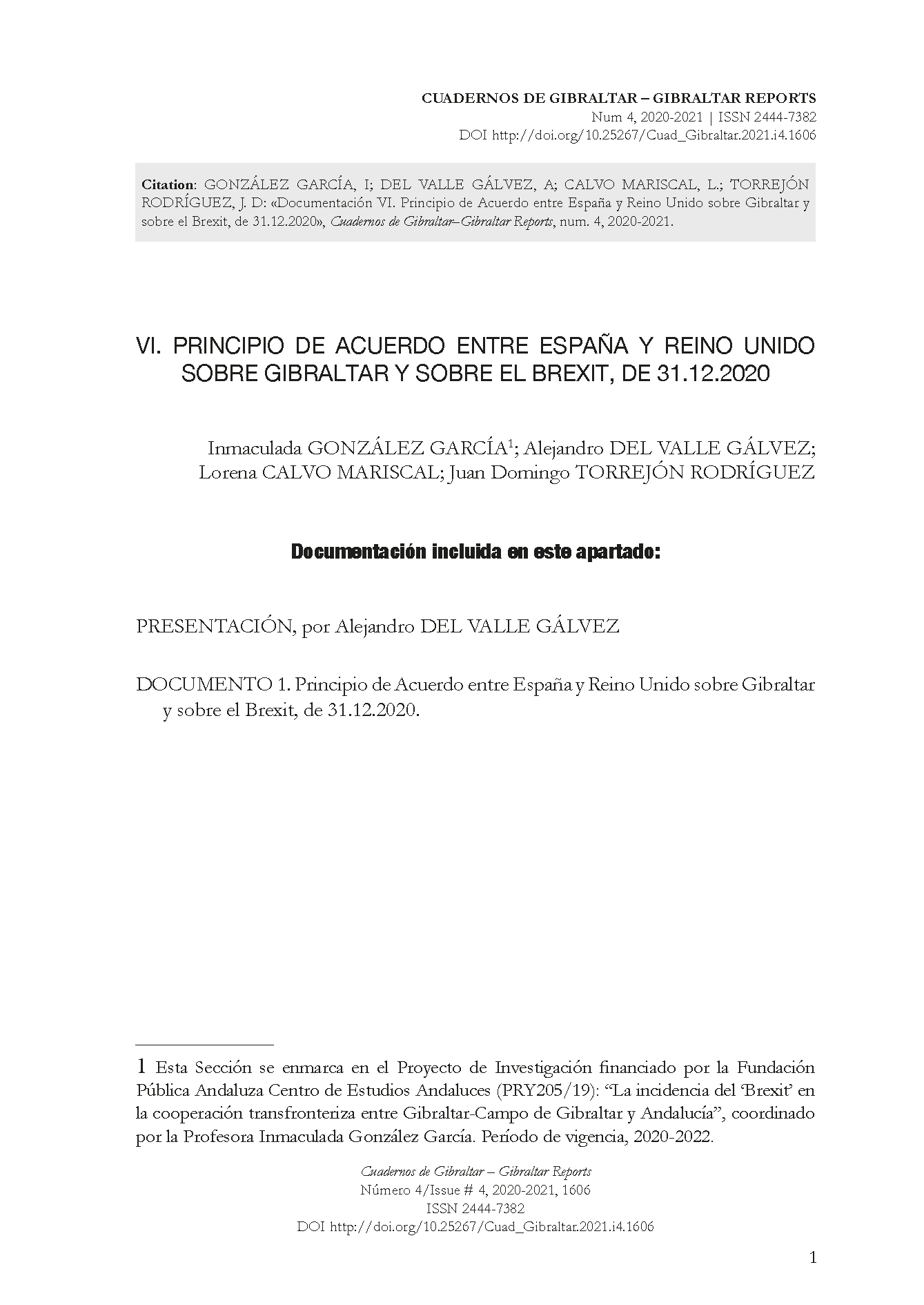 Documentación VI. Principio de Acuerdo entre España y Reino Unido sobre Gibraltar y sobre el Brexit, de 31.12.2020