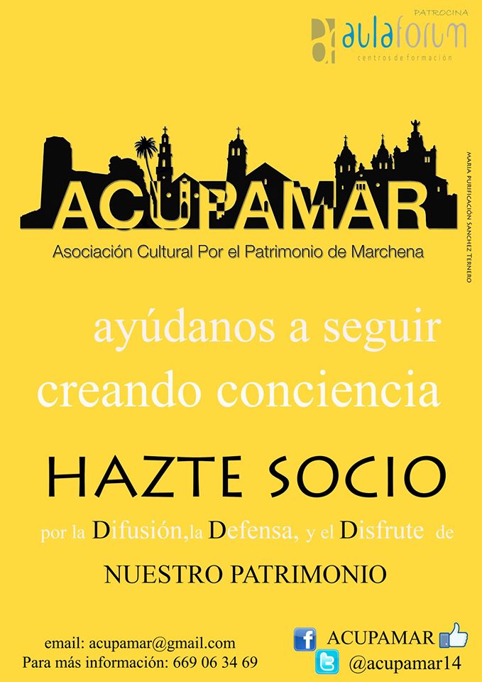 En este trabajo plantearemos una línea de debate en torno a la Gestión Cultural y la concienciación ciudadana. Hemos tomado como ejemplo a Marchena (Sevilla), ciudad donde, ante la falta de un modelo de Gestión Cultural desarrollado desde las administraciones públicas, ha sido la propia sociedad la que se ha organizado con el fin de difundir y poner en valor su Patrimonio Cultural. Conscientes de que la Gestión Cultural requiere mucho más esfuerzo social del que hasta hoy se ha invertido, surge una asociación con el objetivo principal de difundir su Patrimonio Cultural y gestionar la iniciativa ciudadana en pro de su pasado. La Asociación Cultural por el Patrimonio de Marchena (ACUPAMAR) es una organización sin ánimo de lucro, multidisciplinar y con estructura asamblearia, que ha reavivado en apenas un año de existencia el interés de la ciudadanía por su Patrimonio y la voluntad política de protegerlo y gestionarlo.